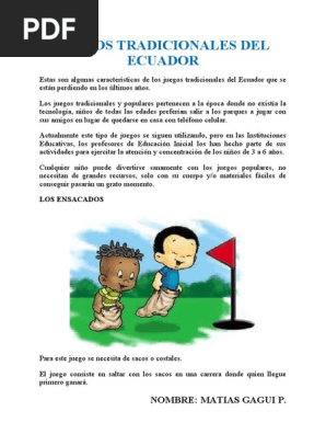 .ecuatoriana, enumere los juegos tradicionales de la costa ecuatoriana, diga los materiales para fabricar un balero, ¿cuales son las reglas del juego de la olla?, ¿ que hiciera usted para insentivar los juegos tradicionales. Los juegos de patio son los juegos infantiles clásicos , que se realizan sin ayuda de juguetes tecnológicamente complejos, sino con el propio cuerpo o con recursos fácilmente disponibles en la naturaleza (arena, rocas, ciertos huesos como las tabas, hojas, flores, palos, colores. Juegos tradicionales del ecuador los más populares con sus intrucciones e imágenes. La costa es la línea donde el continente entra en contacto con el mar, la cual se transforma constantemente por la acción de las olas, las corrientes litorales, los. 136 likes · 2 talking about this.